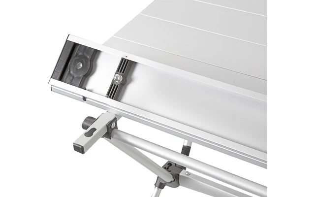 Zusammenklappbarer Außentisch mit ultraleichtem Aluminiumgestell und rollbarer Tischplatte. Völlig kunststofffreie Konstruktion ohne Plastikeinsätze oder -verbinder. Alle Rohre, die den Rahmen bilden, sind schockgesichert, um den Verlust von Einzelteilen zu vermeiden. Die Montage erfolgt schnell, sehr einfach und ohne Werkzeug. Sehr gutes Packmaß für eine problemlose Lagerung. Wird mit einer praktischen Tragetasche geliefert.