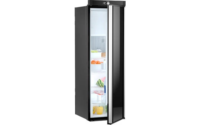 Der hohe, schlanke Absorberkühlschrank Dometic RML 10.4T bietet ein großzügiges Fassungsvermögen von 133 l. Sein funktionales VG-Fresh Gemüsefach mit verstellbarer Feuchtigkeitskontrolle hält Ihre Lebensmittel innerhalb des Kühlfachs länger frisch und fungiert gleichzeitig als zusätzliche Vorratsfläche.