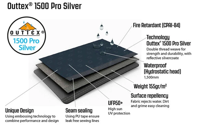 ist ein flammhemmendes, PU-beschichtetes, zu 100 % aus Polyester bestehendes Material, das mit perfektem Gewicht-Leistungs-Verhältnis entwickelt wurde und den Ansprüchen des normalen Wohnwagenalltags bestens standhält