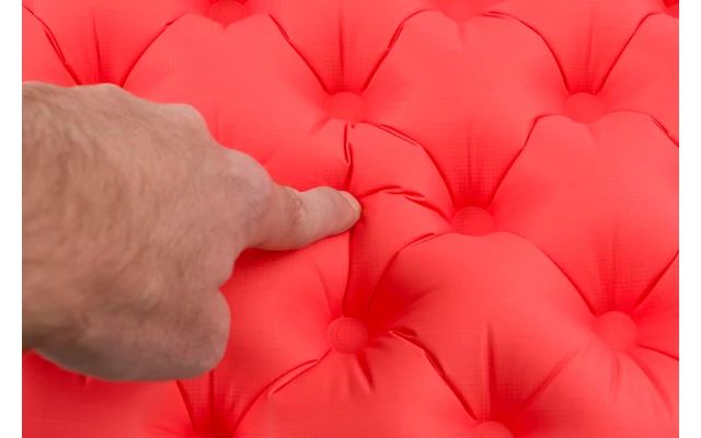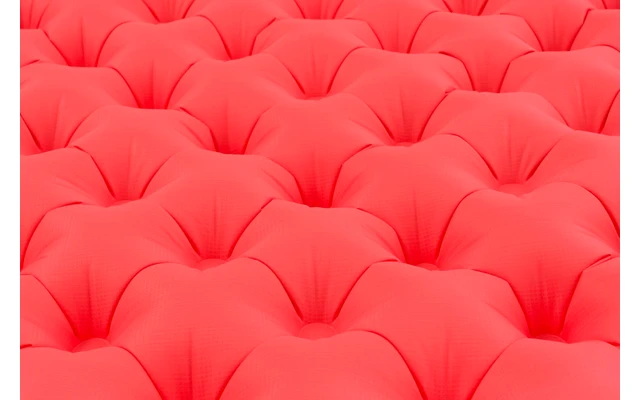 Anstelle einer typischen Trennwandkonstruktion, sind Sea to Summit Schlafmatten mit einer punktgeschweissten Konstruktion aus ineinander verbundenen Kammern versehen, die eine grossflächige Matrix bilden. Jede Kammer verformt sich unabhängig, so dass sich die Matratze der Körperform anpassen kann. Diese Konstruktion macht unsere Matten stabiler, weicher, bequemer und garantiert, dass man sich beim Drehen im Schlaf weder die Hüfte noch die Knie am Boden stösst.
